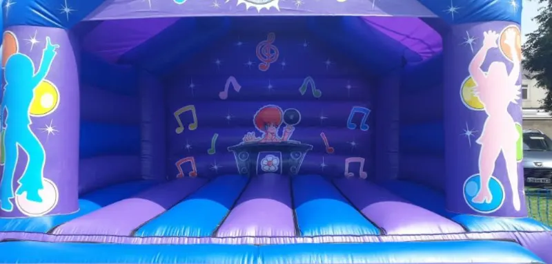 Take a look at our fantastic Disco themed bouncy castle. This castle is big!